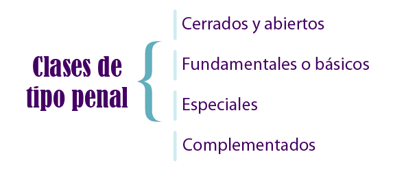 Tipicidad del delito Identificar los tipos de delito con la finalidad de establecer la tipicidad en un caso.Conoce1. El tipo penal El tipo penal El tipo penal es la parte principal de la norma penal, y se refiere a la descripción de la conducta delictiva que, de acuerdo a la ley, traerá como consecuencia una pena. Dicho de otra forma, el tipo es el núcleo de la norma penal, porque es el que describe la conducta que el Estado considera como lesión dentro de la sociedad. Reflexiona lo siguiente: ¿Qué pasaría si no existiera el tipo? Si no existiera el tipo, no existiría el delito. Por ejemplo, si no se tuviera la descripción legal de lo que hoy se conoce como delito de lesiones, no sería delito que alguien te golpeara en la cara y te hiriera. 2. Los elementos del tipo El tipo tiene elementos que es conveniente considerar, y son los siguientes: A continuación, revisa cada uno de estos elementos: El hecho típico El hecho típico, que se refiere a la acción o conducta delictiva, y que está formado por una parte objetiva y otra subjetiva. a. La parte objetiva es el aspecto externo de la conducta, es decir, la exteriorización del proceso humano que el agente lleva a cabo contra realidades que son jurídicamente valoradas. Por ejemplo, robar el patrimonio de otro o lesionar la vida ajena.b. La parte subjetiva es la exteriorización de un proceso movido por la psique y la libertad del agente. En la legislación, esto suele expresarse en términos como «A sabiendas de…», «Con conocimiento de…», «Con ánimo de…», entre otros. El sujeto Se refiere a él o los sujetos que pueden ser activos (los autores y partícipes) y pasivos (aquellos contra quien se dirige la acción del tipo). Por ejemplo, en un secuestro, el sujeto activo es el secuestrador, mientras que el sujeto pasivo es la persona secuestrada. El objeto del delito El objeto del delito es la realidad sobre la que recae la acción. Físicamente se habla de objeto material del delito (en un hurto, por ejemplo, es la cantidad concreta de dinero robada); mientras que jurídicamente se habla del bien jurídico (en el hurto, el bien jurídico es el patrimonio afectado con la sustracción). 3. Clasificación del tipo penal Los diversos tipos penales se pueden clasificar de distintas formas, entre las que se destacan las siguientes: A continuación, podrás revisar cada clasificación para conocerla. 3.1. Tipos cerrados y abiertos En los tipos cerrados se describe exactamente qué elementos forman parte de una conducta que se considera como delictiva, en ellos se señala claramente y sin lugar a dudas cuál es la acción u omisión. Ejemplos de tipos cerrados son casi todos: robo, homicidio, violación, fraude, entre otros. En los tipos abiertos sólo se describe una parte de la conducta de acción u omisión, y es tarea del juez buscar los elementos restantes. Son tipos abiertos los que consideran en su descripción figuras como imprudencia, negligencia, impericia, y ello es así porque el juez debe considerar el delito de acuerdo al sujeto y a las pruebas. Piensa por ejemplo, en un chofer de camión que atropella a una persona por su impericia. 3.2.Tipos fundamentales o básicos Son los tipos principales que contempla la ley, y a su alrededor puede haber otros tipos que participan de la esencia de éste. Es común escuchar de los tipos básicos de los delitos, y ejemplos pueden ser el homicidio, el robo, las lesiones, la violación y la extorsión. 3.3. Tipos especiales Son los tipos que giran alrededor de los básicos, pues se agregan elementos que los hacen precisamente especiales. Un ejemplo es el parricidio, u homicidio en razón del parentesco o relación (puedes ver los artículos 302 y 323 del Código Penal Federal). Considera lo siguiente: Tipo básico Homicidio: privar de la vida a otro. Elementos que se agregan al tipo básico (Privar de la vida) al ascendiente o descendiente consanguíneo en línea recta, hermano, cónyuge, convivente, compañero o compañera civil, concubina o concubinario, adoptante o adoptado. Como puedes darte cuenta, en el parricidio hay un tipo básico al cual se le anexan otros elementos que lo especializan o especifican. 3.4. Tipos complementados Se les llama así porque complementan a los básicos, pero sólo en lo que se refiere a su gravedad, sea por los agravantes o atenuantes del caso. Por ejemplo, al homicidio básico también se le puede llamar homicidio simple (penado, de acuerdo al Código Penal Federal, de12 a 24 años de cárcel), y esto sirve para diferenciarlo tanto del homicidio agravado (grave porque el atacante tuvo ventaja; en el Código Penal Federal, la pena puede llegar a los sesenta años de prisión) como del homicidio atenuado (no tan grave, ya que puede ser producto de una pelea, y el homicidio resultó ser accidental; en el mismo Código Penal Federal, la sanción que se aplica es de 4 a 12 años de prisión). 4. La tipicidad La tipicidad es otro elemento importante que has de aprender en esta clase. La tipicidad La tipicidad es cuando la conducta de un sujeto se adecúa al tipo penal, es decir, cuando una persona realiza una conducta que encuadra perfectamente con la descripción del tipo. ¿Puedes imaginar un ejemplo de tipicidad? Un ejemplo es cuando una persona se apodera de un objeto que no le pertenece, como un reloj, sin contar con el consentimiento del dueño de dicho objeto. En este caso, la conducta se adecúa con el tipo del delito del robo, por lo que se puede decir que hay tipicidad. Por otra parte, de forma contraria a la tipicidad, existe la atipicidad, que es cuando la conducta de un sujeto no encuadra exactamente en el tipo penal. En el artículo 15 del Código Penal Federal, se señala la atipicidad como una causa de exclusión del delito (esto es, que no hay delito). Dicho artículo indica lo siguiente: Causas de exclusión del delito Artículo 15. El delito se excluye cuando:II.- Se demuestre la inexistencia de alguno de los elementos que in